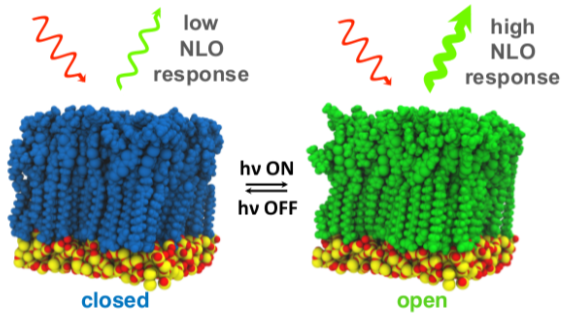 Contraste de la réponse de seconde harmonique lors de la commutation photo-induite de films minces composés de photochromes organiques déposés sur des surfaces semi-conductrices