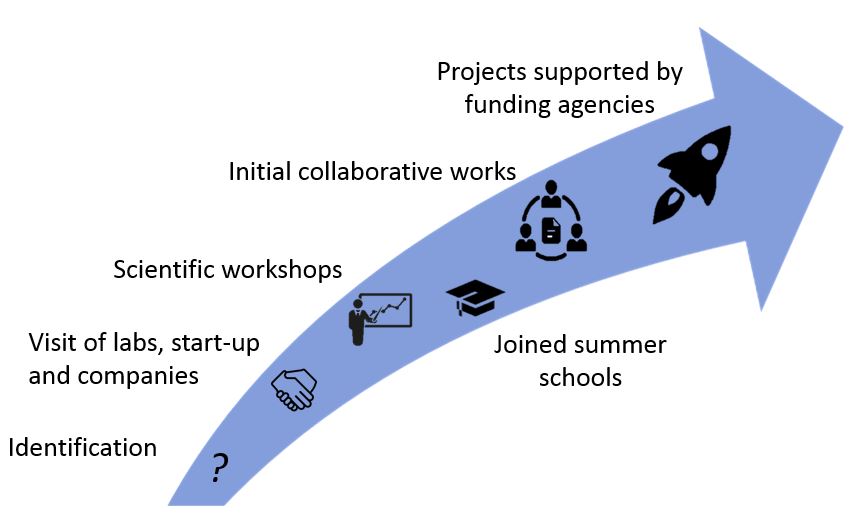 Knowing the competences of scientists in Switzerland and France, we are identifying new partneership opportunities and contact both sides to push the initial idea forward. | ![]() |